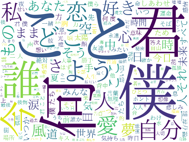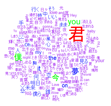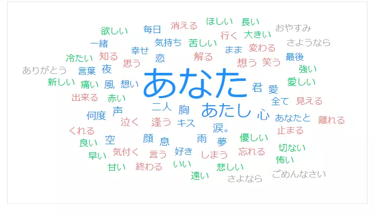 世の中いろんなアーティストの歌詞のワードクラウドを出している人がいますのでいくつか引用してみます。